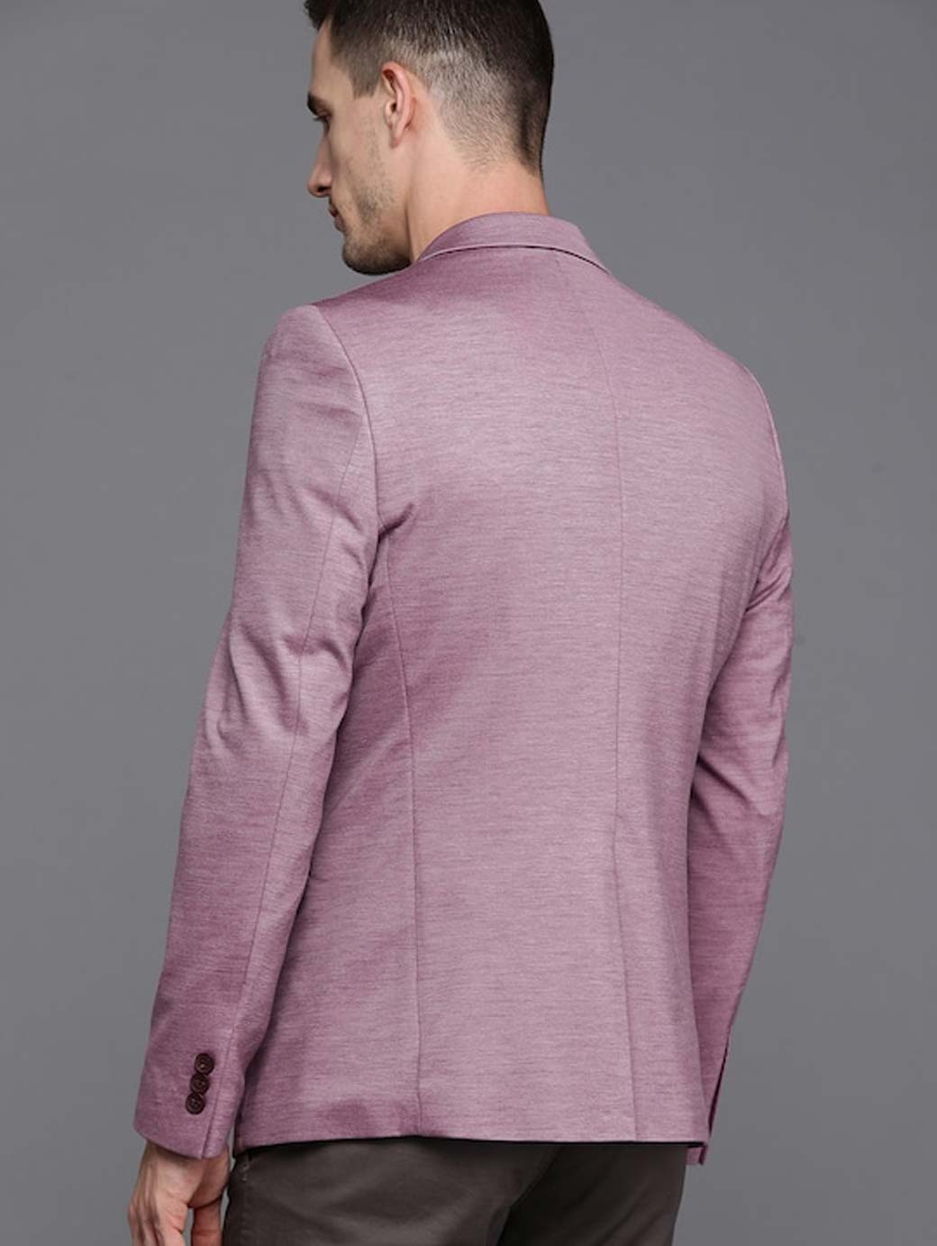 Men Purple Melange Effect Slim Fit Formal Blazer
