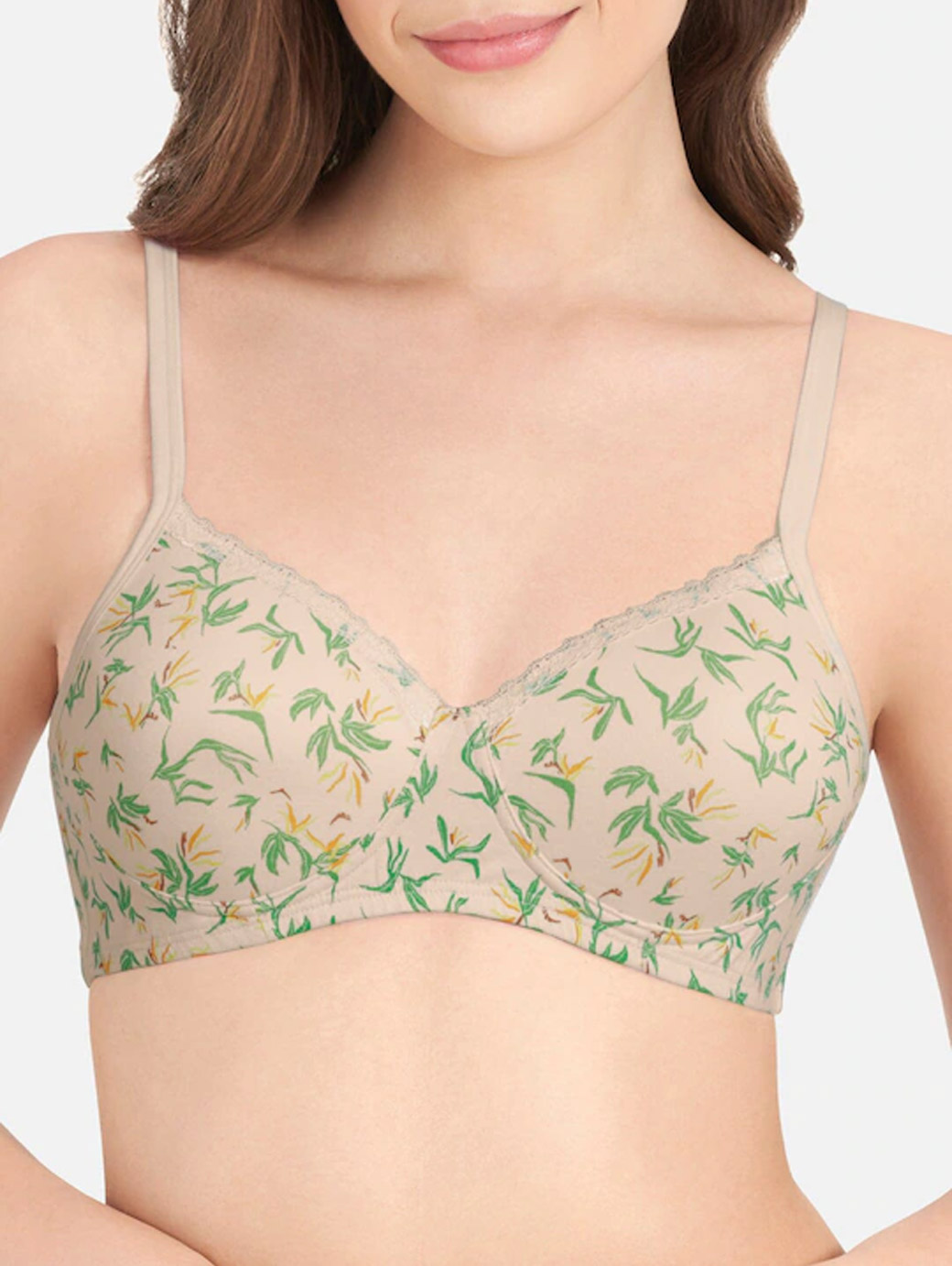 Beige Printed Lightly Padded Non-Wired Full Coverage T-Shirt Bra