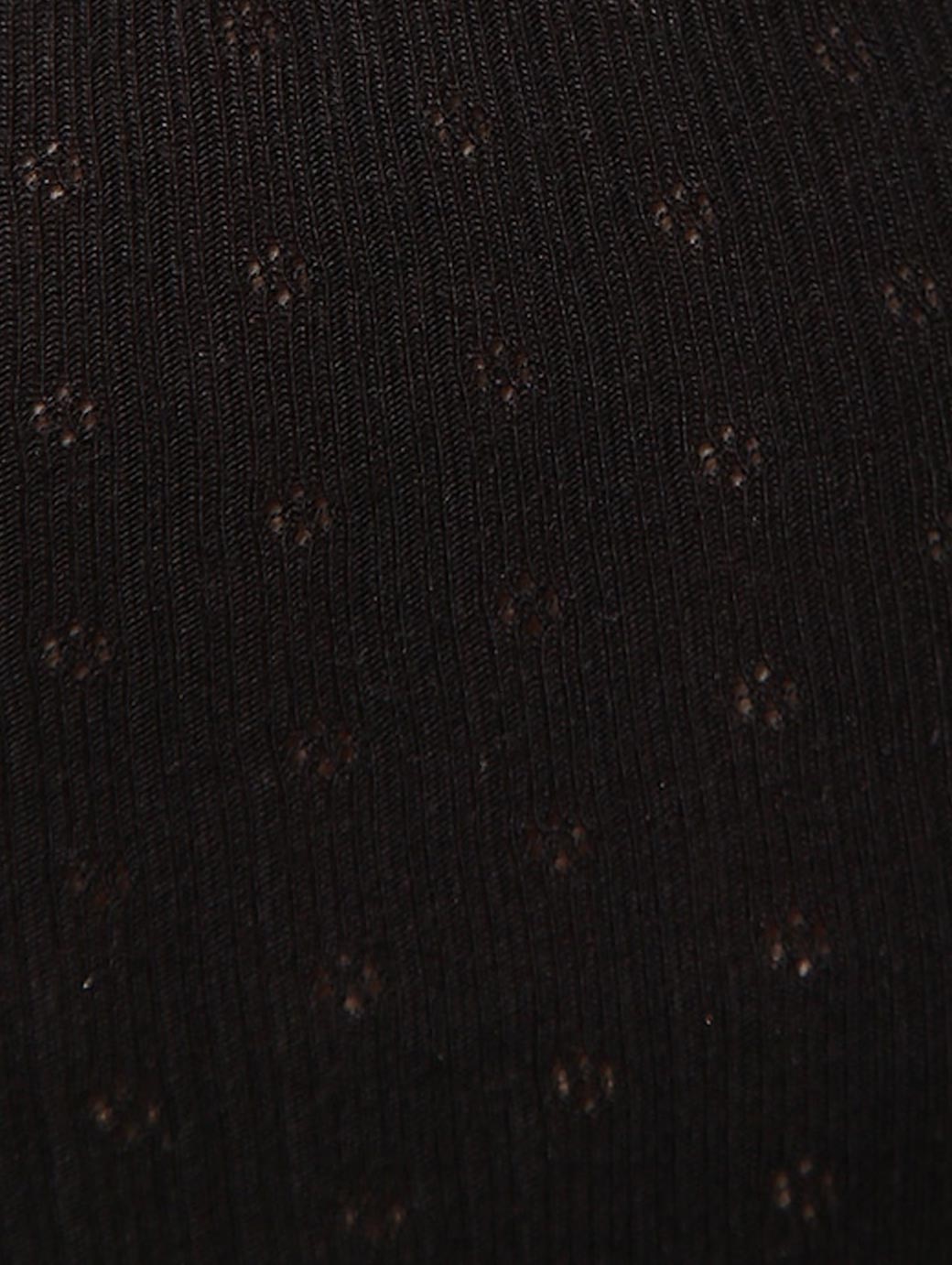 Black knitted thermal top in a patterned weave, has long sleeves