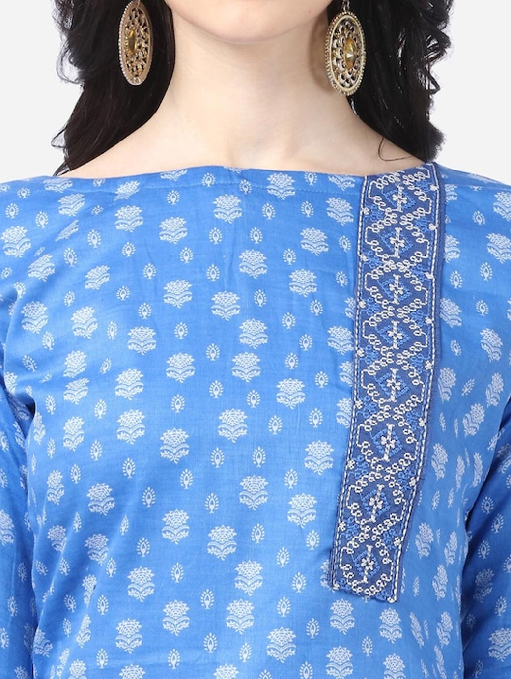 Blue and white printed kurta fabric
