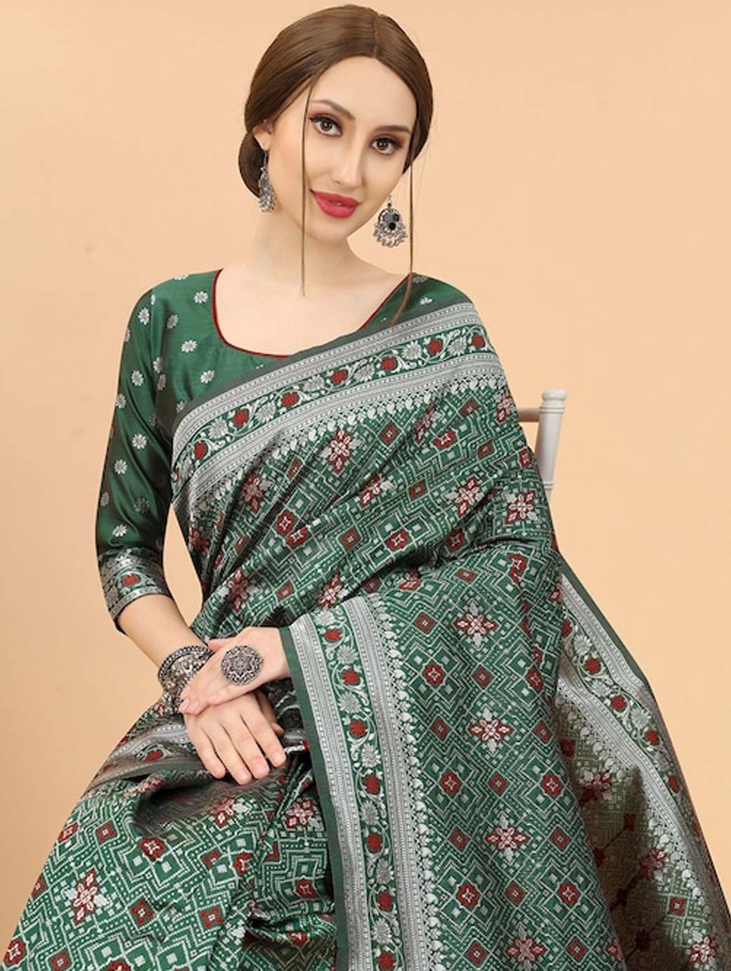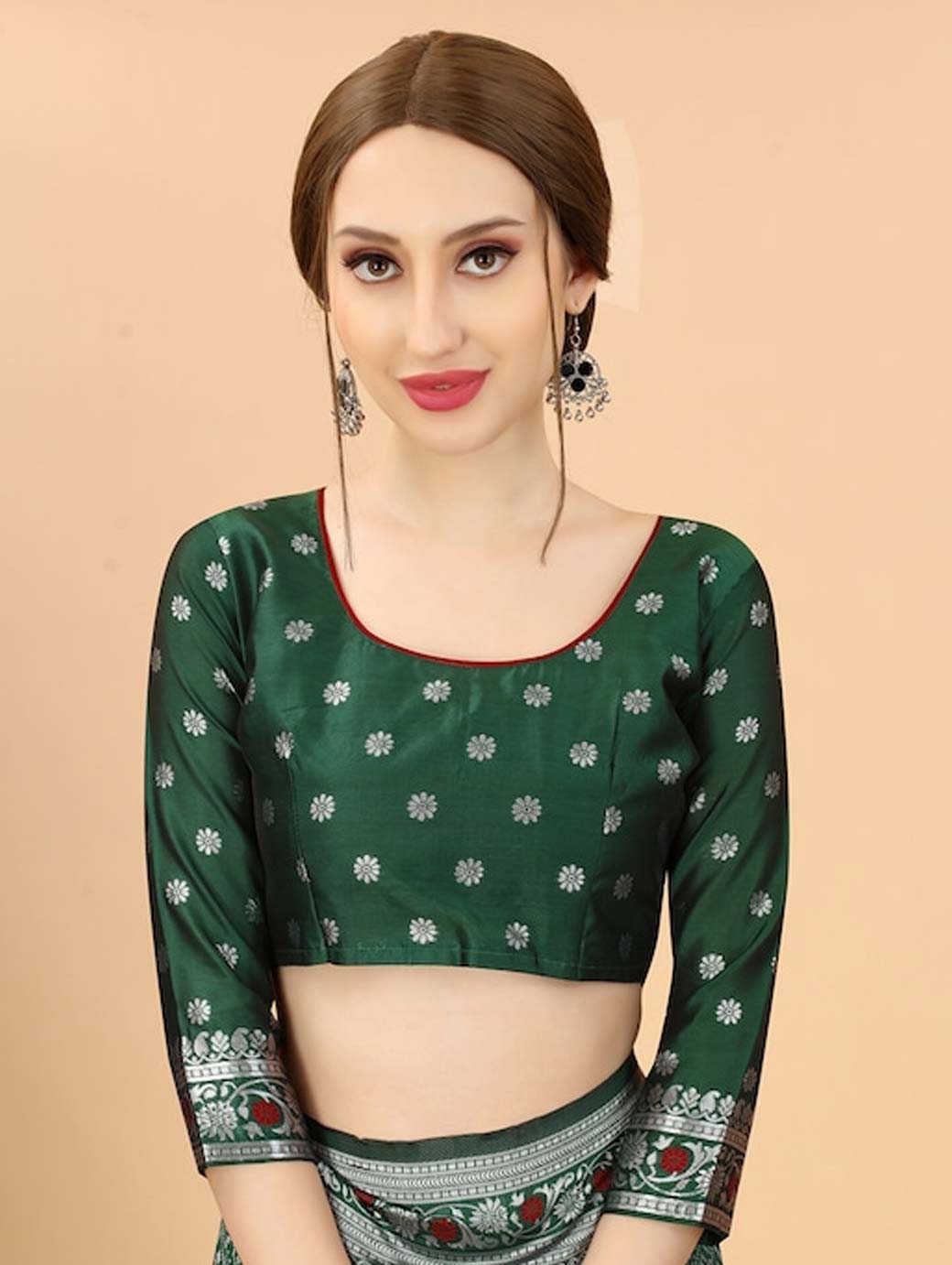 Green Woven Design Zari Silk Cotton Banarasi Saree