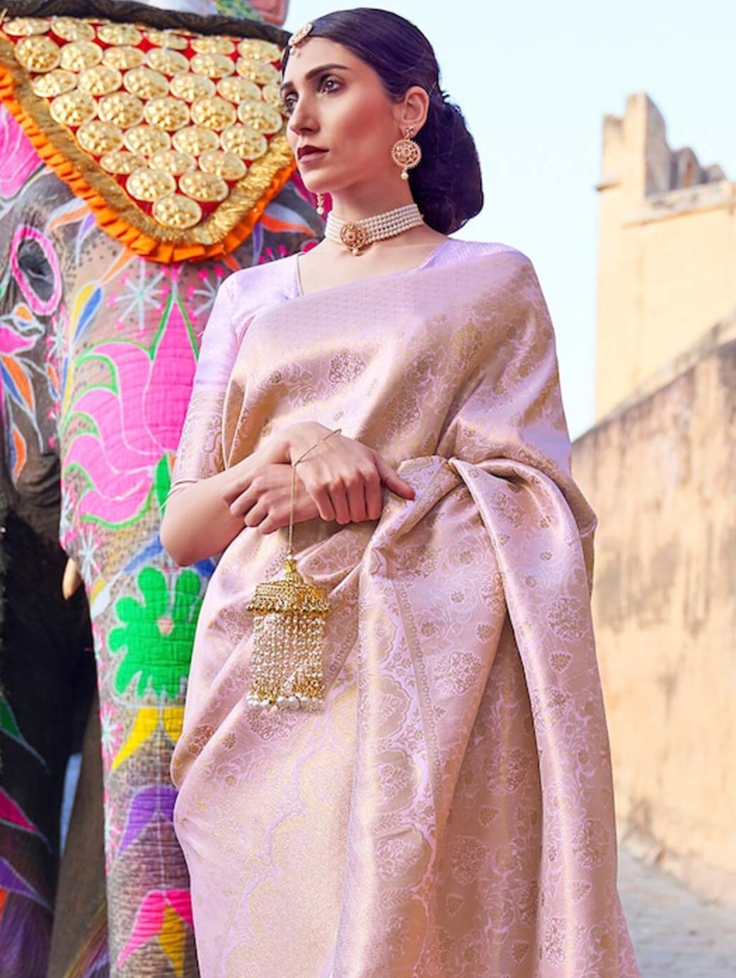 Lavender and gold-toned banarasi saree
