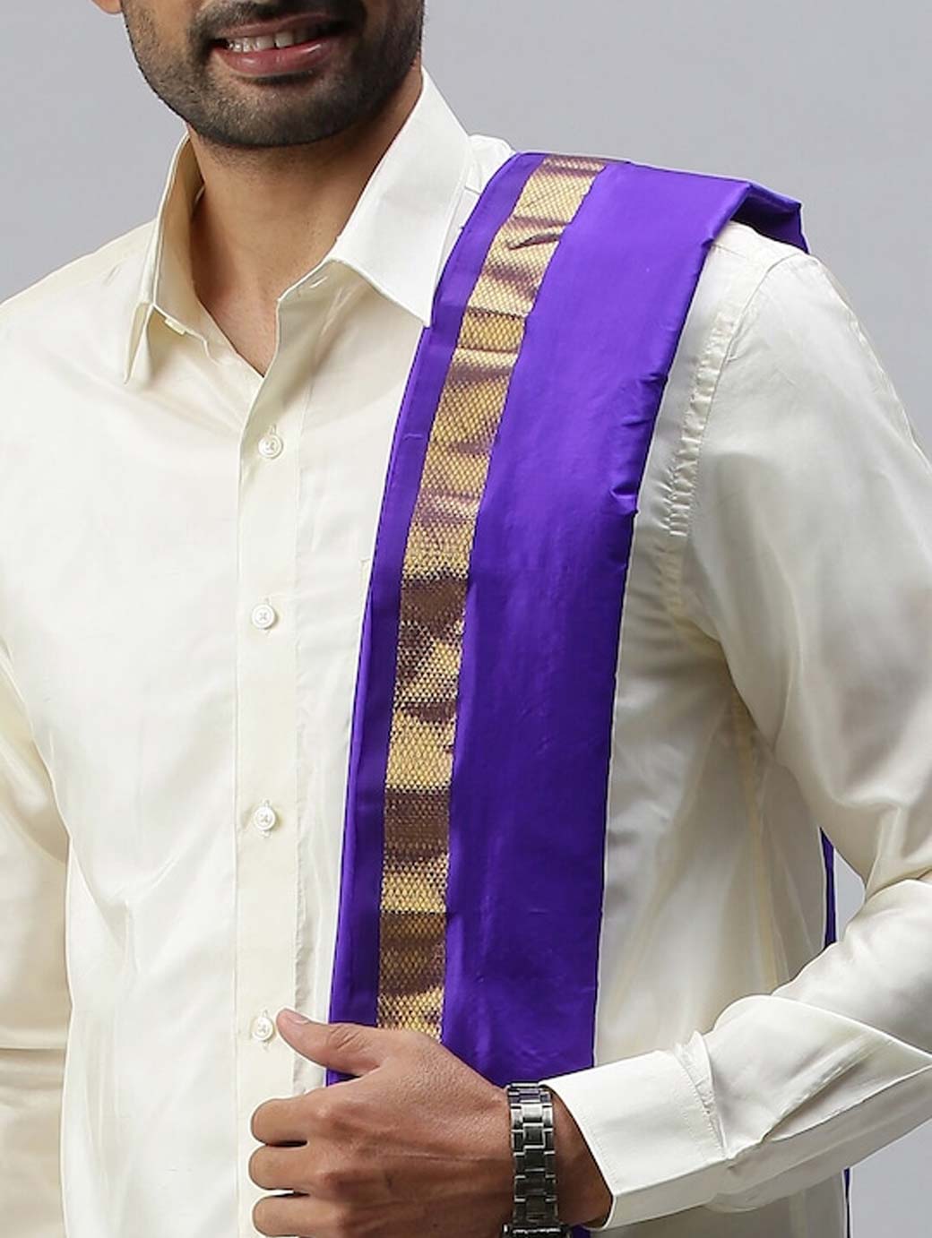Men Blue Solid Pure Silk Dhoti