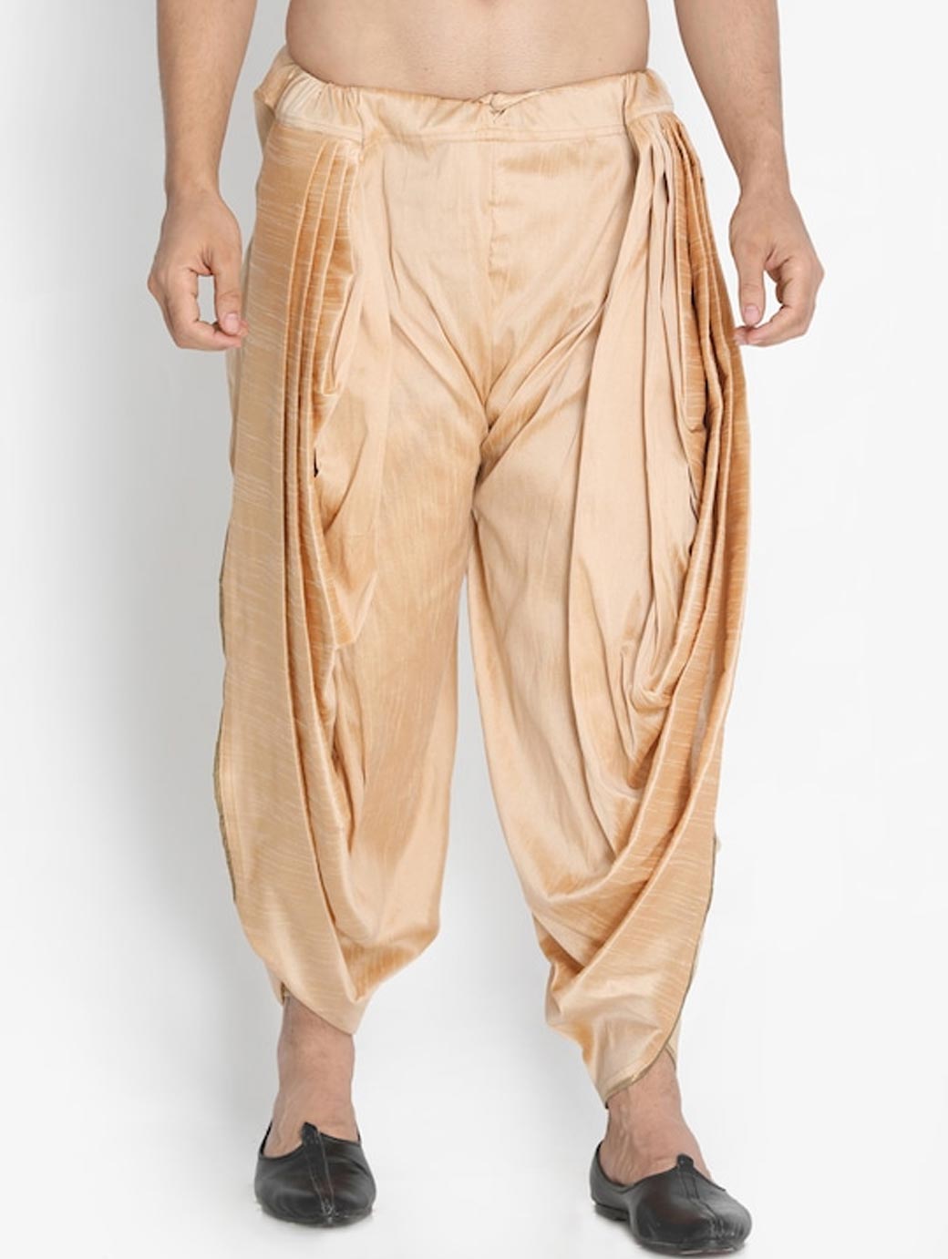 Gold-toned solid dhotis, has an elasticated waistband witha drawstring fastening