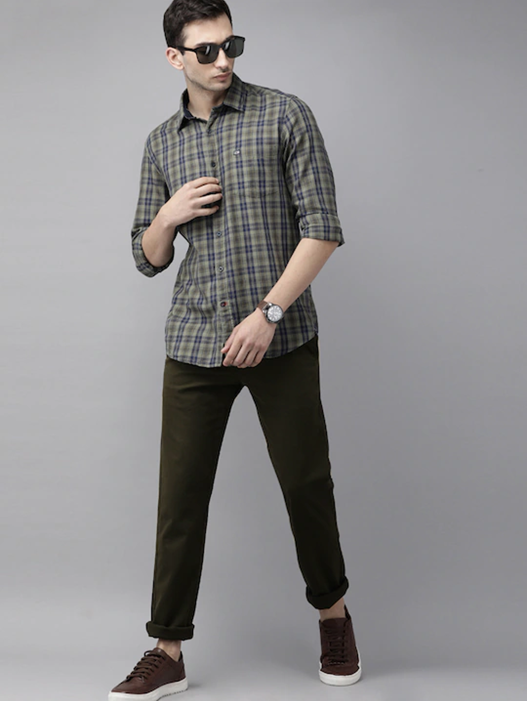 • Green woven trousers