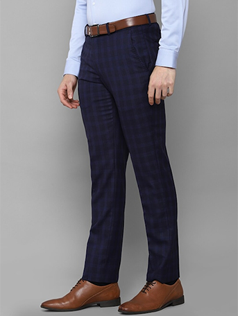 Men Navy Blue Checked Slim Fit Trousers