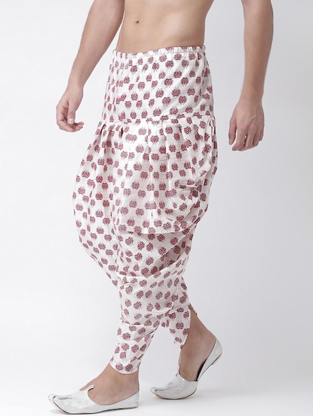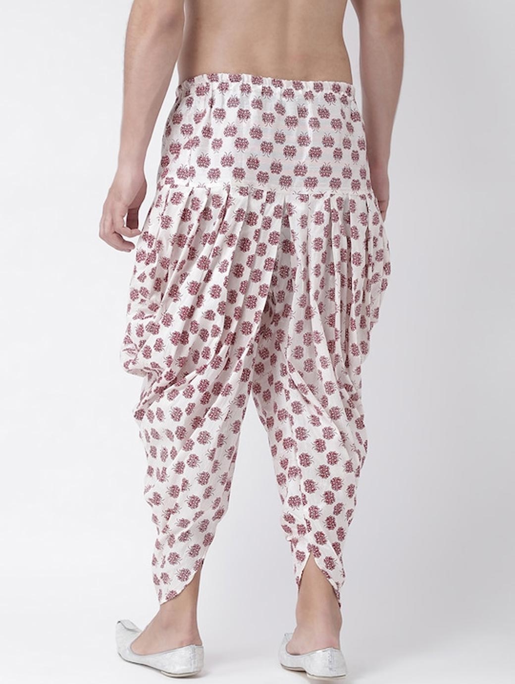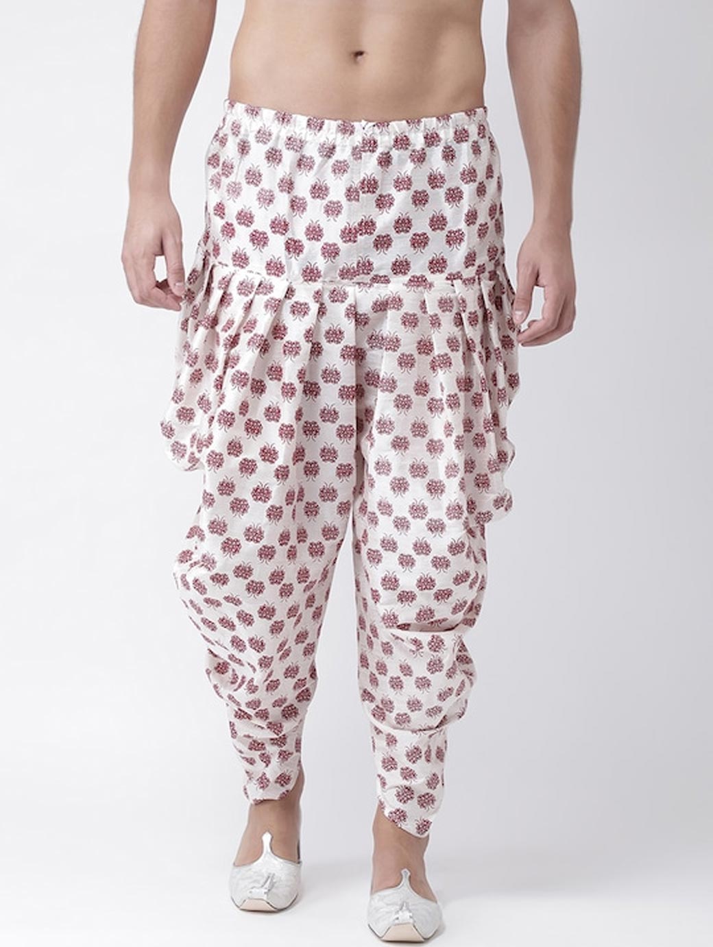 Off-white and maroon printed dhoti with gathers and pleats, has an elasticated waistband with a drawstring fastening