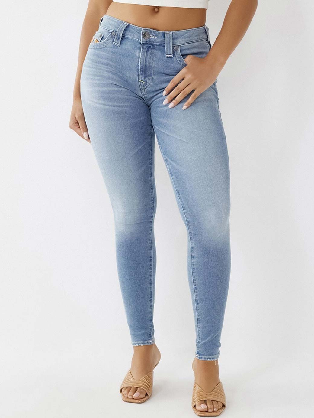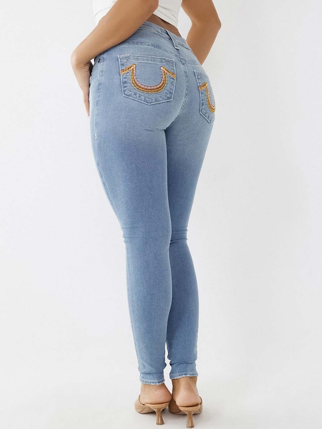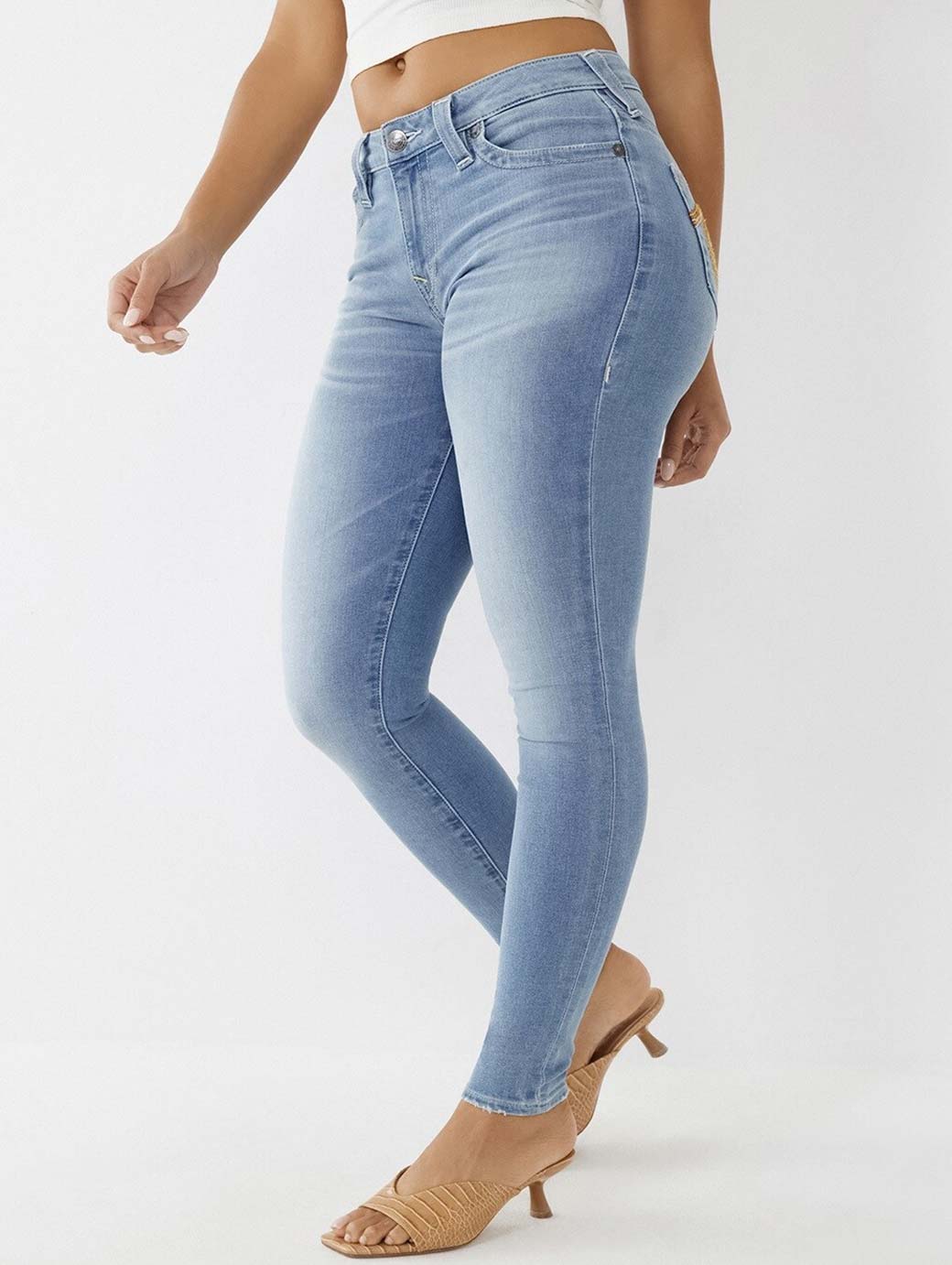 Women Blue Lean Skinny Fit Low Distress Light Fade Jeans