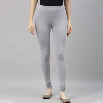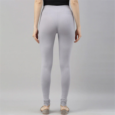 Women Grey Solid Churidar-Length Leggings